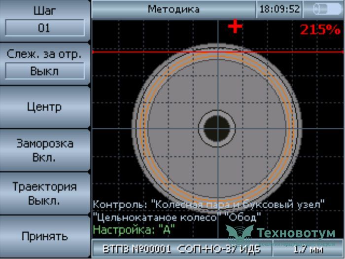 Процесс настройки методики контроля значительно упрощен за счет использования в Томографик УД4-ТМ автоподстройки оптимальной частоты преобразователя. Для снижения трудоемкости и увеличения достоверности контроля «Томографик 2.5» поддерживает устройства слежения за траекторией преобразователя (томографический сканер и др.).